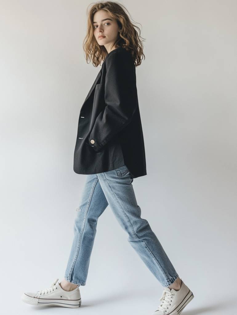 Несмотря на это, не забывайте о деталях. Простая обувь и минималистичные аксессуары помогут завершить образ и не отвлекут от вас внимание. При этом использование нескольких слоев одежды (например, футболка и кардиган) добавляет интерес и разнообразие в облик без перегруженности.