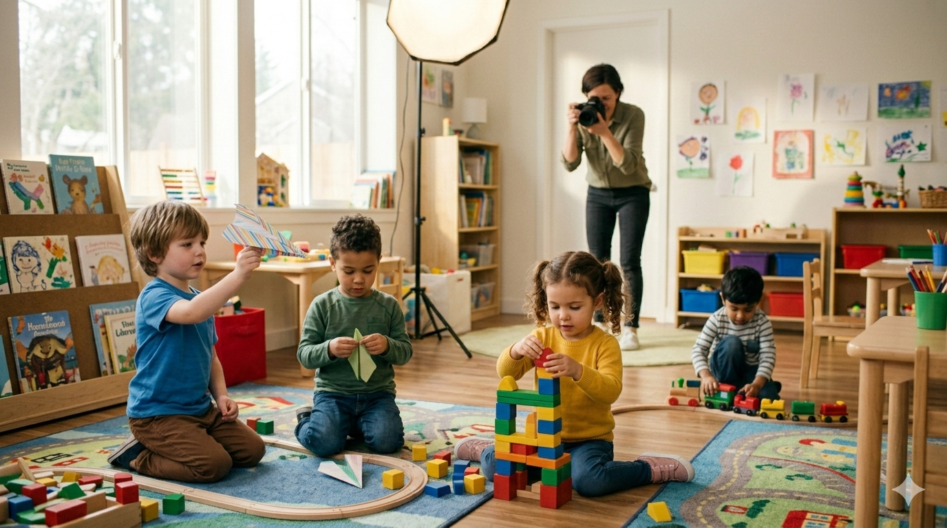 - Метод: Обустройте локацию, где ребенку разрешено что-то делать (кидать бумажные самолетики, строить из кубиков). Вы ставите свет на эту зону и просто «ловите» детей в процессе игры. Это дает 100% нативный результат без зажимов.