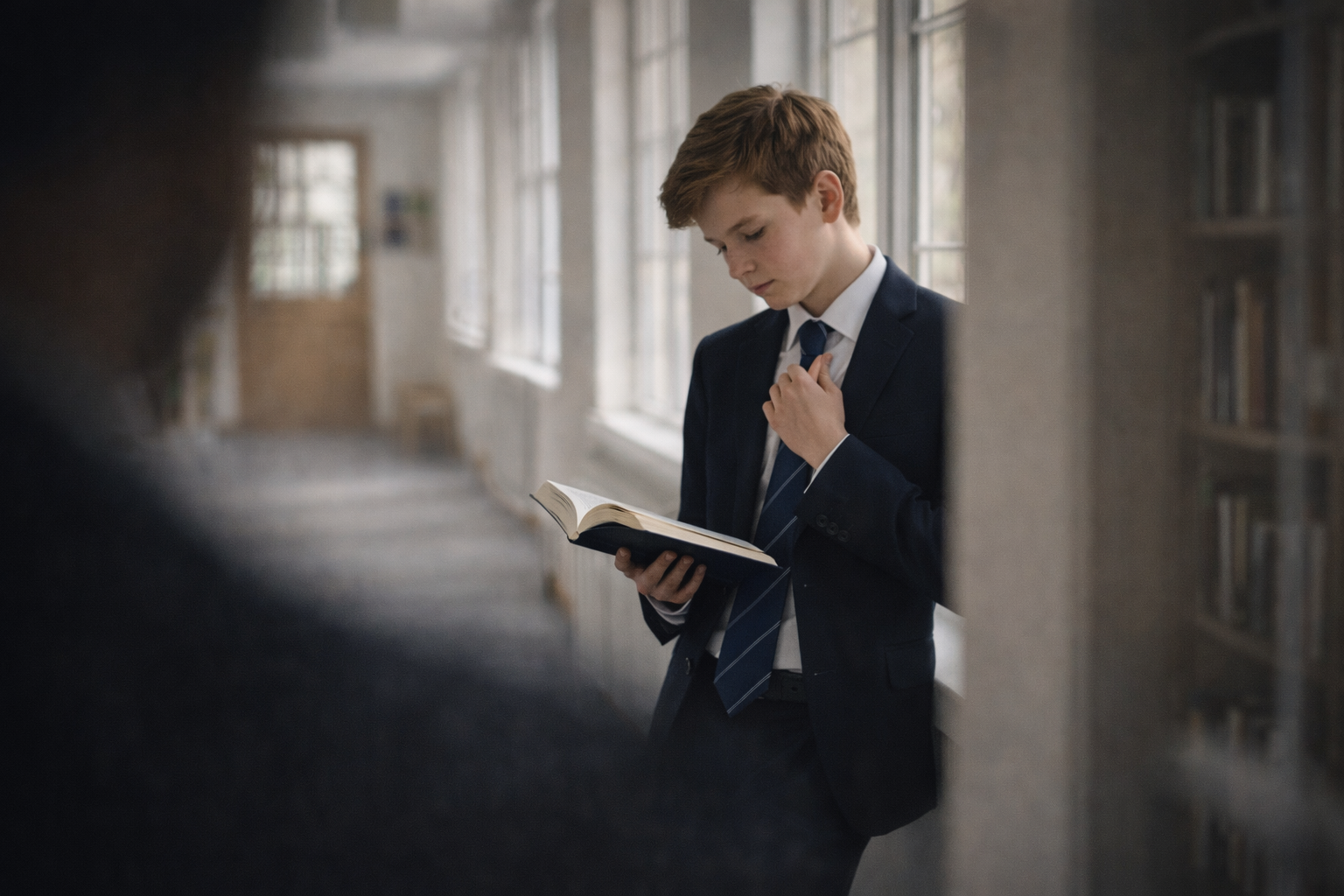 - Динамика в покое: Попросите ученика не просто стоять у окна, а медленно перелистывать книгу или поправлять галстук. Движение рук добавляет кадру кинематографичности.