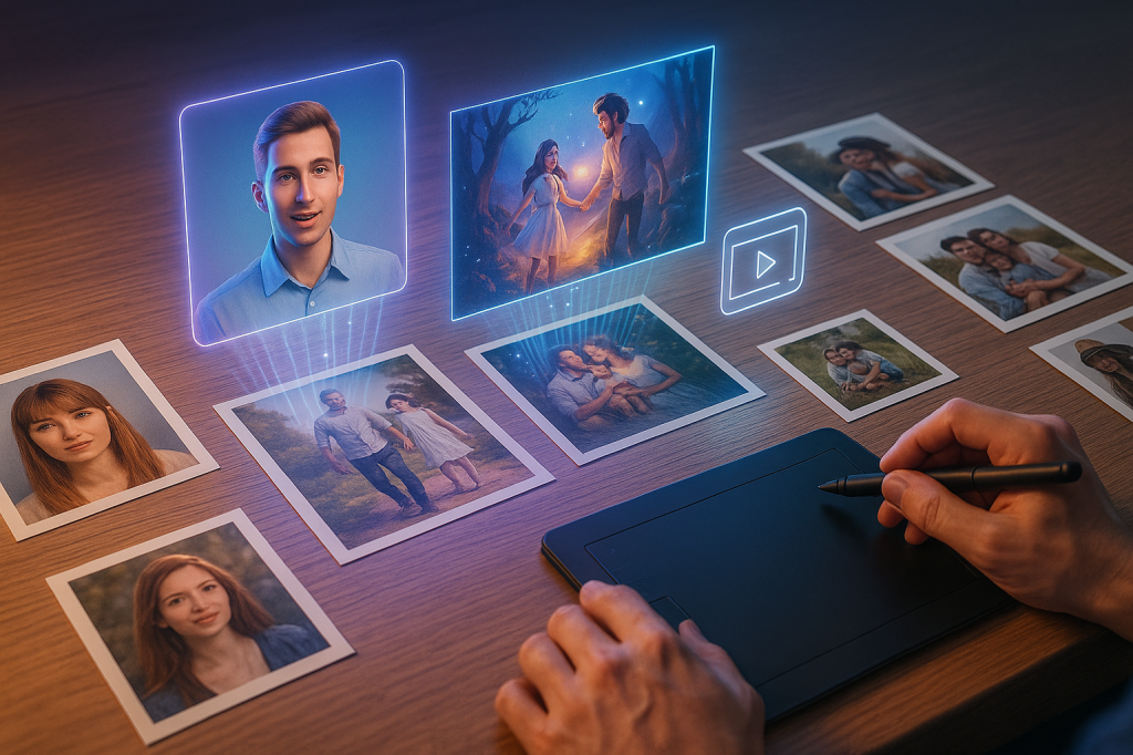 - Kaiber — превращает отдельное фото в кинематографичный короткий ролик. Условно: семейное фото плавно переходит в анимированную сцену, стилизованную под мультфильм или клип. Такой «мини-фильм» фотограф может продавать как премиум-дополнение к альбому.