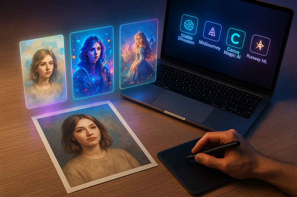 - Сняли портрет? С помощью Stable Diffusion или MidJourney можно создать несколько стилизованных версий: акварель, киберпанк, «свадебная сказка». Такие принты отлично идут для альбомов или подарков.