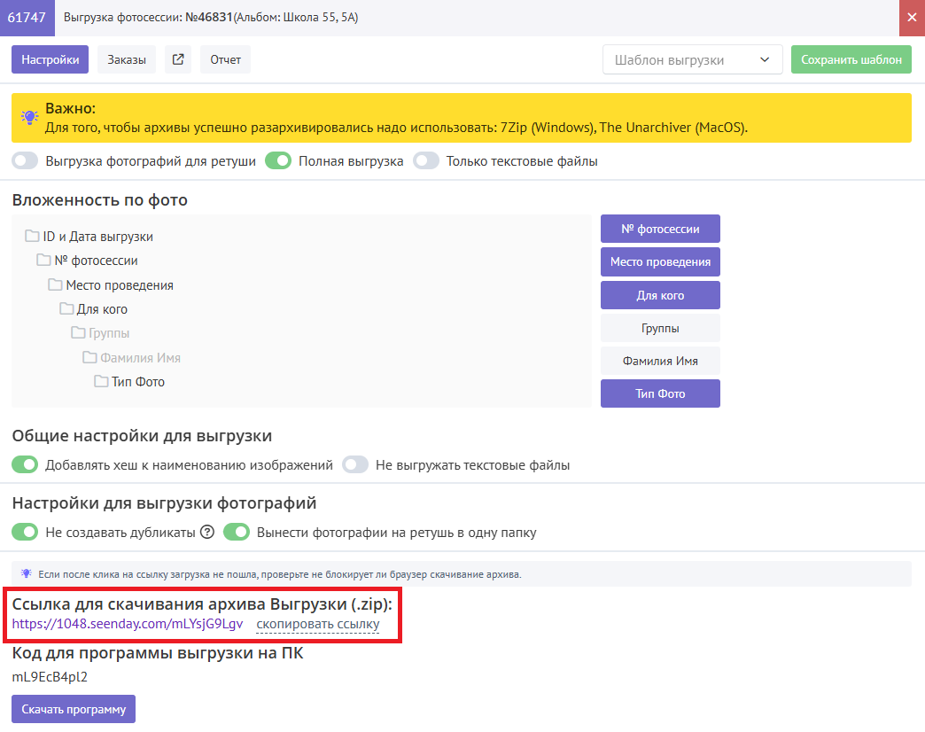 На странице выгрузок Вы можете скачать нашу программу для выгрузок, которая поможет автоматизировать сортировку фотографий.