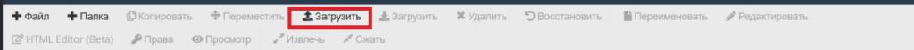 9. Вернитесь в «Менеджер файлов» и загрузите этот файл в папку через кнопку загрузки на верхней панели.