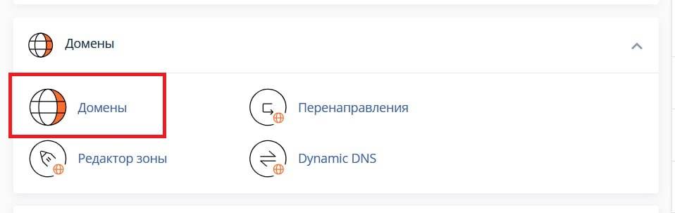1. Зайдите в раздел "Домены".