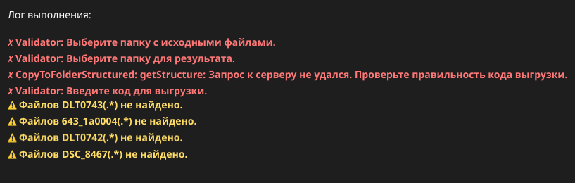 - Не выбрана папка с исходными файлами/ папка для результата;