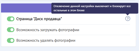 Обратите внимание: отключение первой настройки в блоке, выделенной жирным шрифтом, выключает все настройки данного блока - то есть блокирует полностью доступ пользователя к данному разделу.