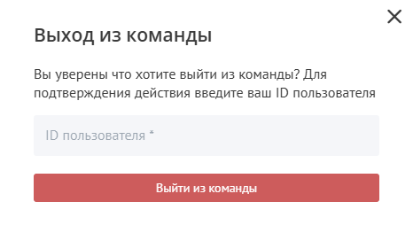 Если Вы не являетесь владельцем или уже передали права другому участнику, можете выйти из команды, нажав эту кнопку.