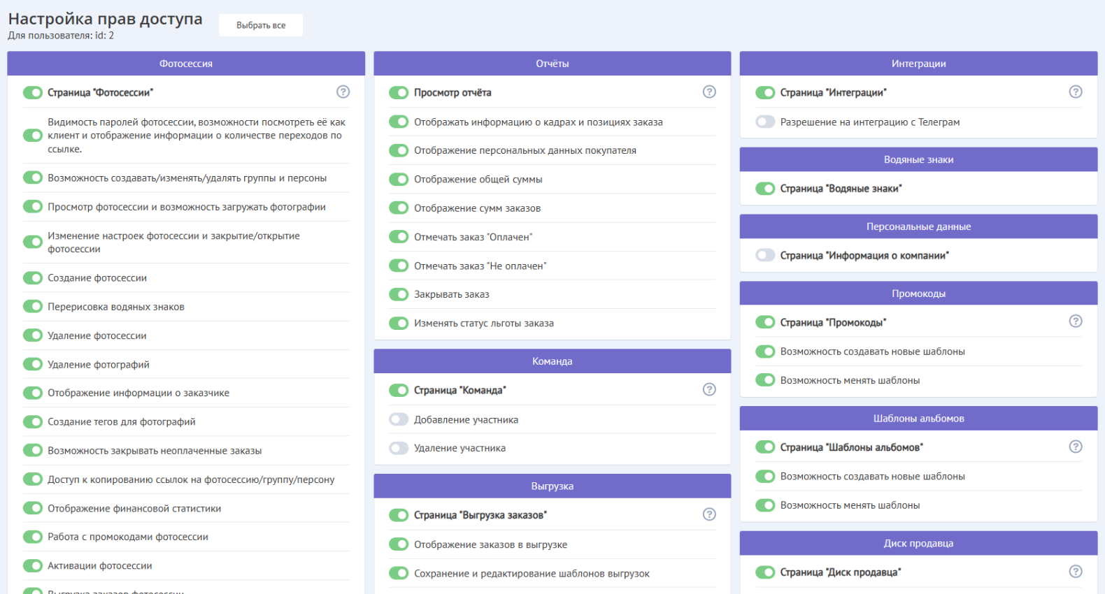 Под все действия, которые можно совершать на сервисе, есть ползунки, разделенные по блокам. Настраивайте их по необходимости.