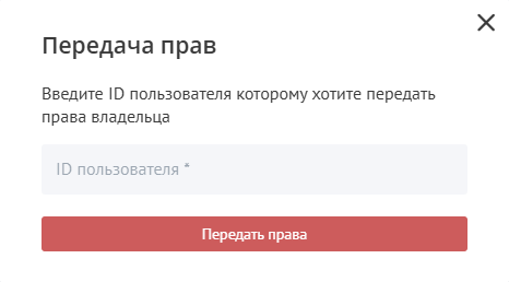 Чтобы передать права другому участнику команды, нажмите эту кнопку в правом углу страницы.