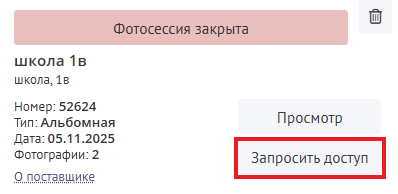 Фотосессия закрыта, но можно воспользоваться кнопкой «Запросить доступ» - так фотограф узнает, что Вы хотите приобрести фотографии: