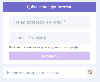 Номер и пароль фотосессии вы можете узнать у фотографа.