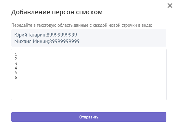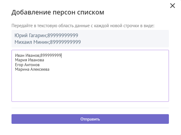 Если вы знаете имена персон, их можно указать через Enter таким образом. Номера телефонов необязательны: