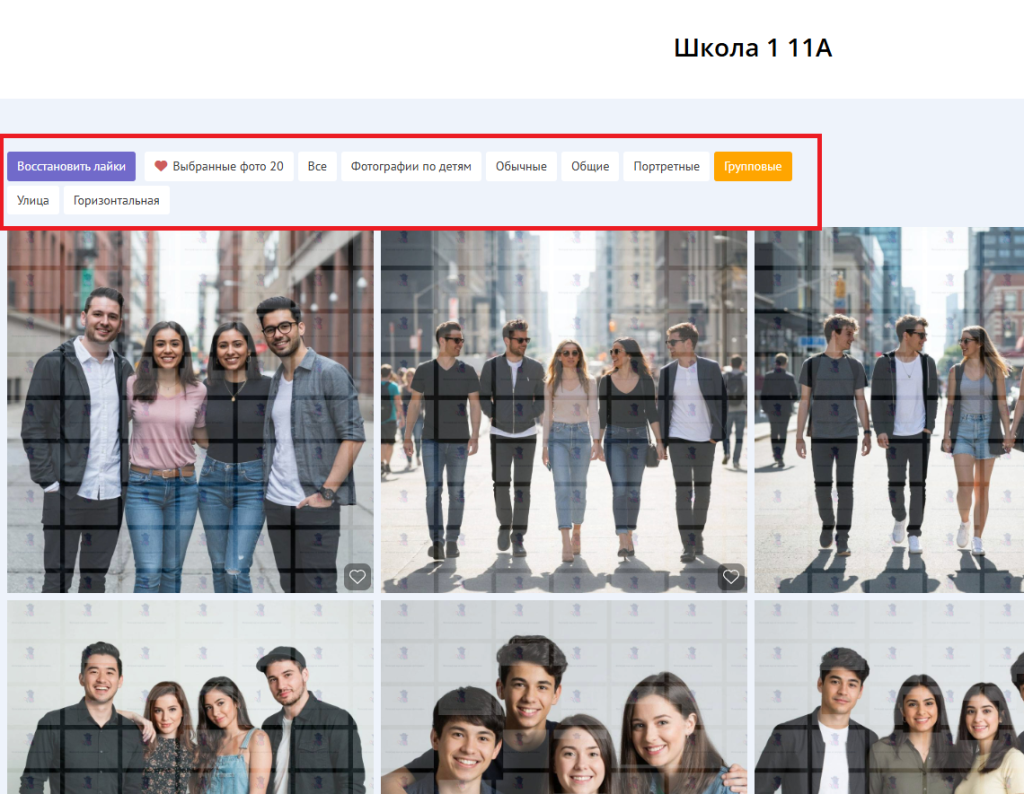 Разделение по группам можно использовать, когда Вы отсняли всю школу или детский сад и не хотите создавать отдельные фотосессии для каждого класса или группы.