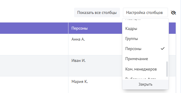 Столбец Персоны