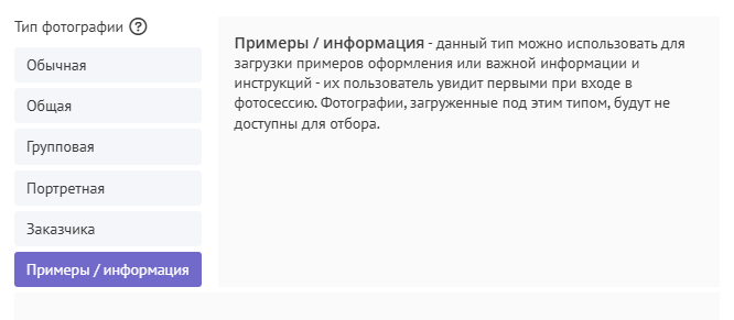 Новый тип фотографий "Примеры/информация"