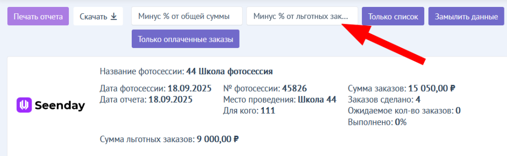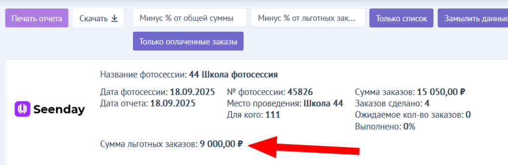 2) Чуть выше можно указать % от льготных заказов, чтобы верно рассчитать стоимость и не переплатить администрации