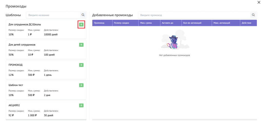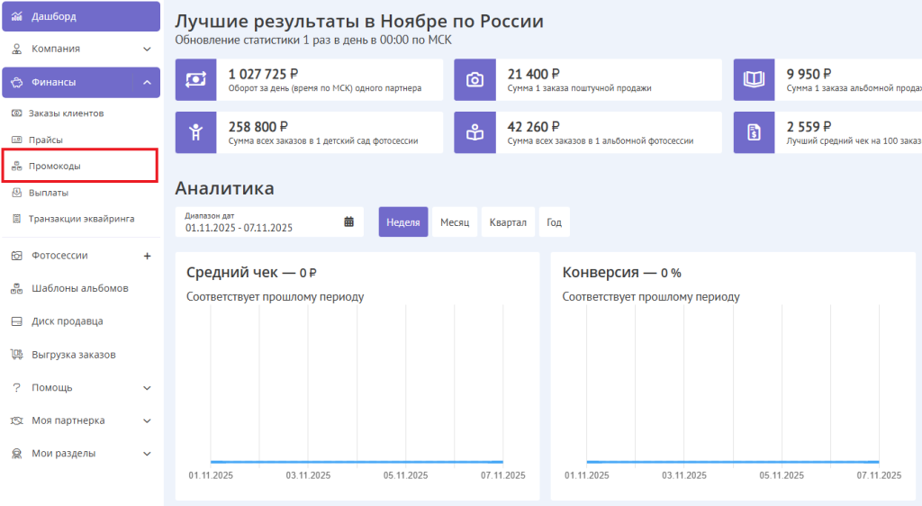 Для того, чтобы оказаться в разделе, перейдите в "Финансы" - "Промокоды":