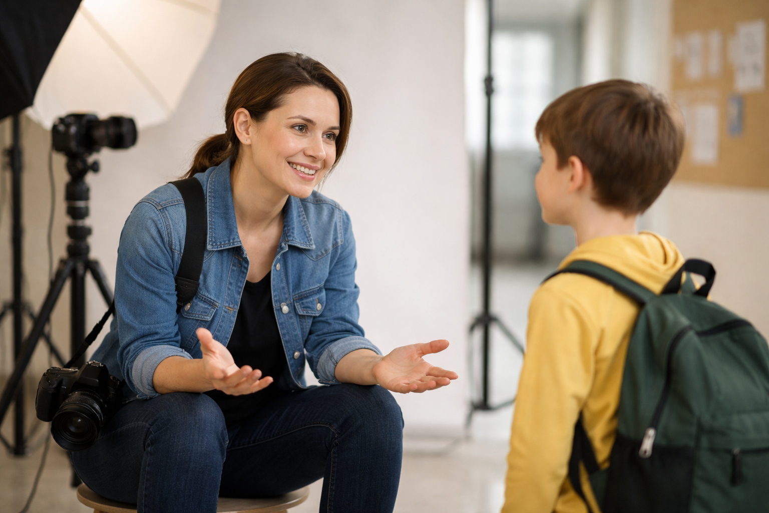 - Позитивное подкрепление: Хвалите каждого. Не за внешность («ты красивая»), а за работу («ты отлично позируешь», «у тебя крутой взгляд»). Это создает виральный эффект в очереди — дети заходят к вам уже с позитивным ожиданием.