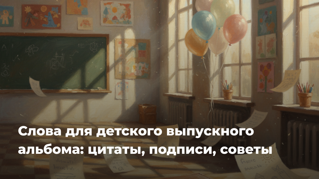 Ну вот, настал момент, когда маленькие люди с огромными рюкзаками и не менее большими мечтами становятся “выпускниками”. Родители плачут, воспитатели улыбаются сквозь слёзы, а где-то на последней странице альбома должна быть та самая фраза — простая, но точная. Та, что останется у них в памяти, когда они вырастут и случайно откроют альбом через двадцать лет.